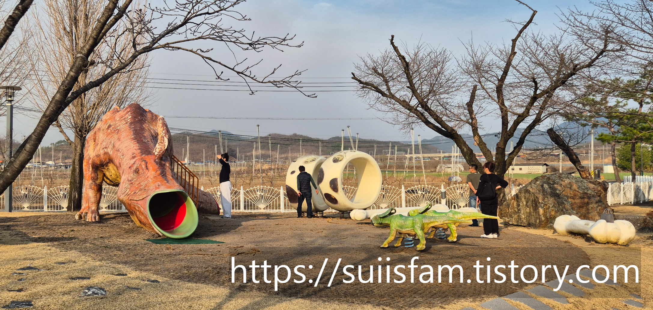 조그마하게 공룡모양으로 꾸며진 놀이터도 보여요.