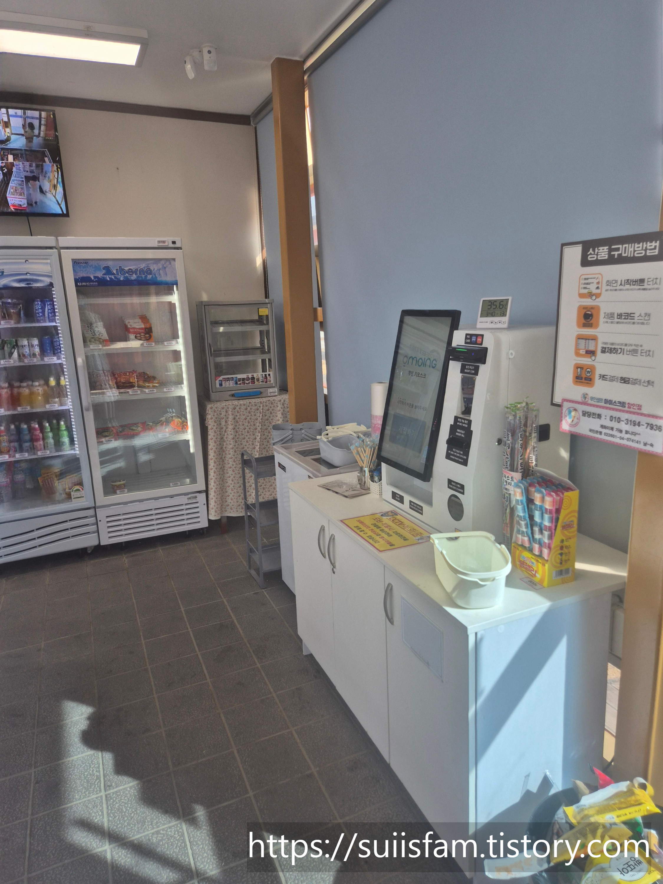 편의점은 박물관 외부에 있어요. 상상놀이터 가는 길에 위치해 있고 무인으로 운영되고 있어요.